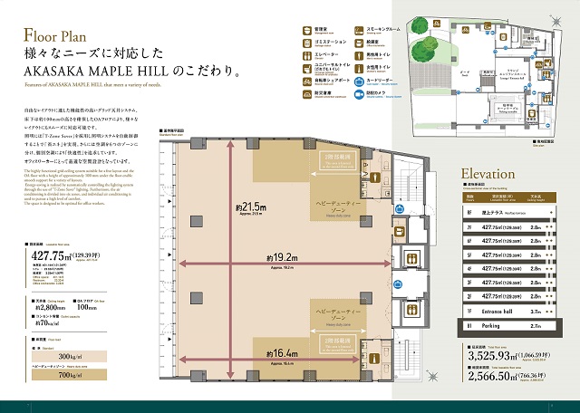 最新のビルスペックを備えた基準階貸床面積129.39坪、総貸床面積766.36坪